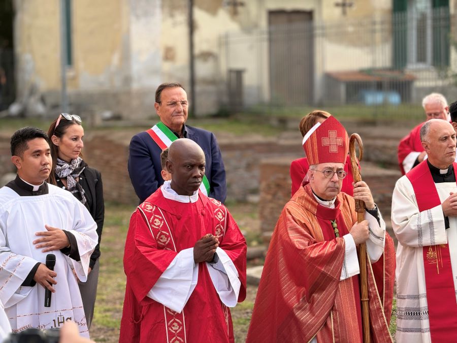 Il rito religioso è stato officiato da Gianrico Ruzza, Vescovo della Diocesi di Porto – Santa Rufina; durante l’omelia ha ricordato il valore universale della fede, del sacrificio e della speranza, incarnati dalla figura del Santo Patrono.