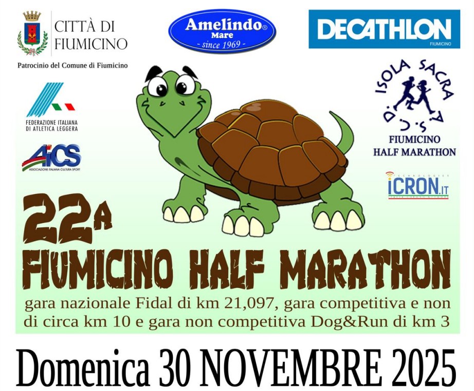 Si terrà domenica 30 novembre, dalle 7alle 12, la 22ª Edizione della Fiumicino Half Marathon, patrocinata dal Comune di Fiumicino, uno degli eventi sportivi più attesi del territorio, che si svolgerà lungo le strade di Isola Sacra.