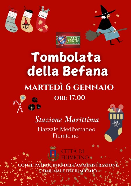 L’Acis Odv, ha organizzato per la giornata dell’Epifania, del 6 gennaio, dalle ore 17.00 una Tombolata di Solidarietà, presso la Stazione Marittima di Piazzale Molinari, dove si potranno vincere ricchi premi, tra cui giocattoli e bigiotterie, divertendosi insieme, con lo spirito aggregativo che caratterizza tutta la manifestazione, nell’aspettare i numeri vincenti. Nei locali al coperto si potrà giocare per tutto il pomeriggio in compagnia della simpatica vecchina che passeggerà tra un ambo, una cinquina e un tombolino, distribuendo dolciumi a tutti i partecipanti.