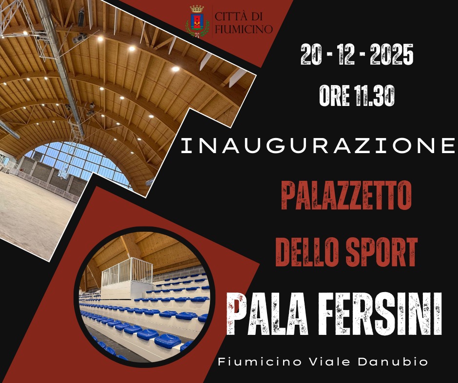 Sabato 20 dicembre 2025, alle 11.30, sarà inaugurato il rinnovato Palazzetto dello Sport PalaFersini, in viale Danubio a Fiumicino. Alla cerimonia prenderanno parte, tra gli altri, il Sindaco Mario Baccini. L’intervento di ristrutturazione restituisce alla città una struttura moderna, sicura e pienamente funzionale, destinata a diventare un punto di riferimento sportivo e aggregativo a livello comunale e regionale.