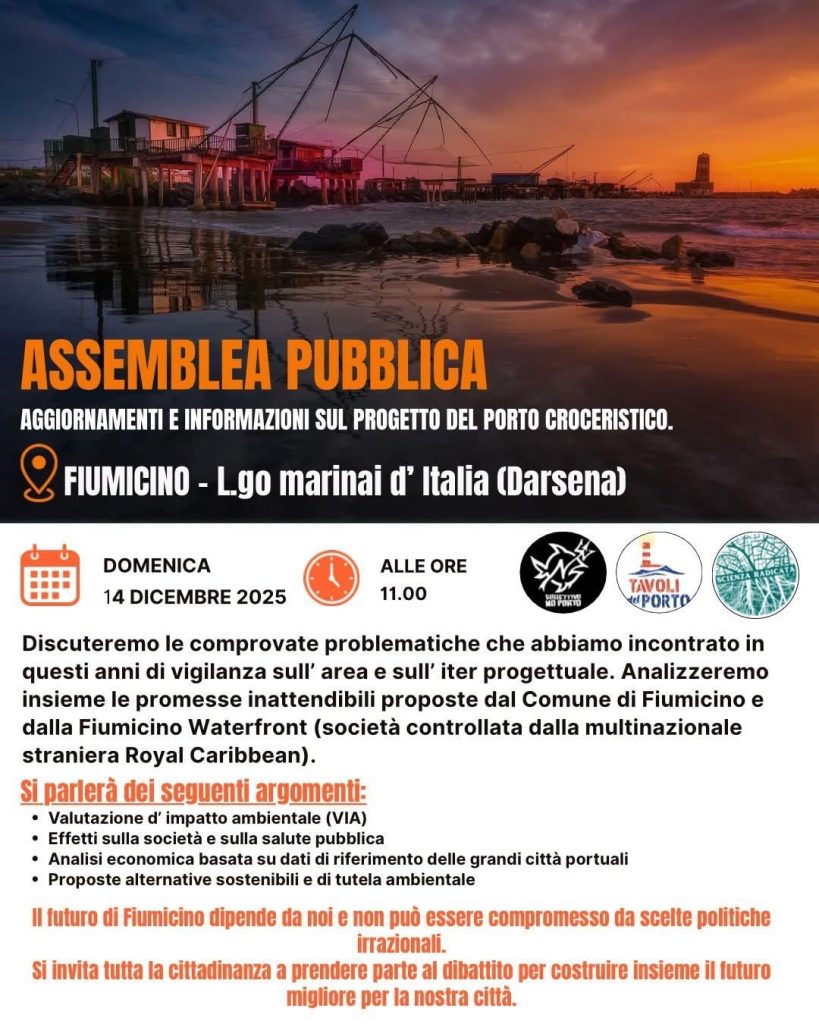 Il comitato Tavoli del Porto assieme al Collettivo No Porto e l’associazione Scienza Radicata invitano a partecipare all’assemblea pubblica di domani domenica 14 dicembre ore 11:00 che si terrà in Darsena al Largo marinai d’Italia. Si discuteranno lo stato delle cose del progetto del porto crocieristico e i prossimi passi da intraprendere.
