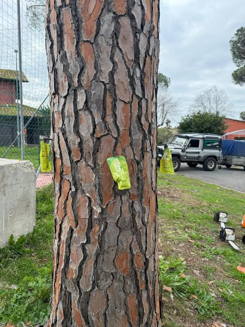 Prosegue l’attività di monitoraggio e cura delle aree verdi del Comune di Fiumicino, in collaborazione con ARSIAL, per contrastare la diffusione della toumeyella, un insetto che attacca le fronde dei pini e può provocarne la morte. Negli ultimi giorni, sono stati realizzati 5 abbattimenti e circa 45 interventi di endoterapia, la tecnica che prevede l’iniezione di una sostanza specifica nel fusto dell’albero, capace di raggiungere le larve dell’insetto e impedirne lo sviluppo.